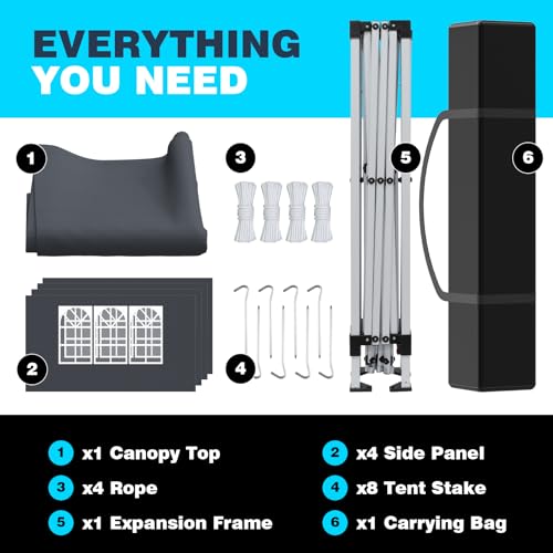 EINFACHER AUFBAU UND HOCHENVERSTELLBAR-Pop-up Pavillon lässt sich in wenigen Minuten aufbauen und bietet 3-fach höhenverstellbare Abstufen (240-260 cm). Diese Anpassungsfähigkeit macht ihn ideal als Terrassenüberdachung, Camping-Zelt oder Gartenpavillon. Einfach aufklappen und genießen!