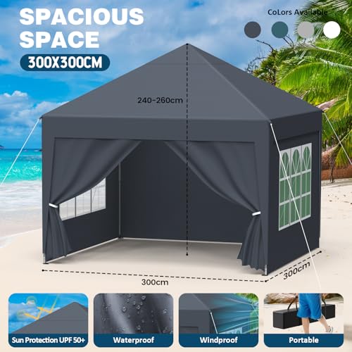 Alpstorm Pavillon 3x3M Pop-up Faltpavillon Wasserdicht Stabil UV-Schutz Höhenverstellbar Partyzelt Garten Outdoor Camping Zelt mit Tragetasche Zeltgarage Ideal für Gartenpartys, Anthrazit