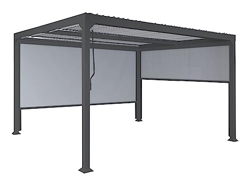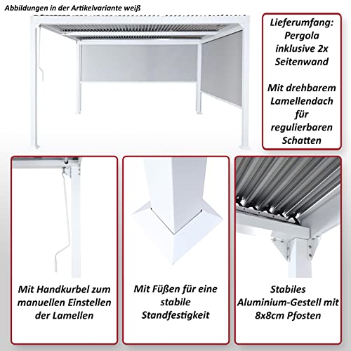 Lieferumfang: Pergola inklusive 2x Seitenwand | In unterschiedlichen Ausführungen erhältlich | Stufenlos regulierbarer Wind- und Insektenschutz | Mit drehbarem Lamellendach für regulierbaren Schatten | Mit Handkurbel zum manuellen Einstellen der Lamellen