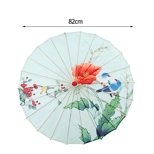 【Langlebig und zäh】 Handgefertigter orientalischer Sonnenschirm jeder geöltem Papier mit hochwertigen Satin-Materialien, dieser dekorative Regenschirm ist so konzipiert, dass er dank seines hochwertigen, stabilen Bambusrahmens jahrelang hält, aka bei starkem Regen oder Wind.