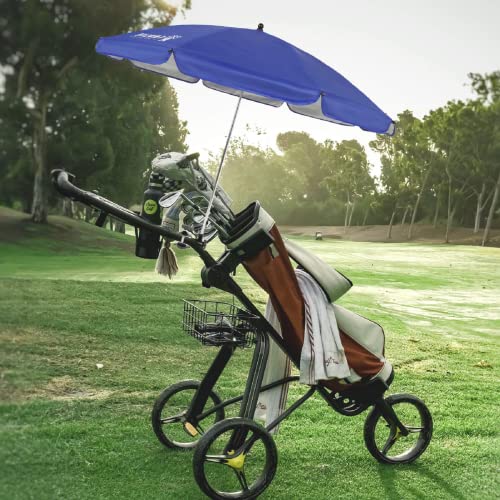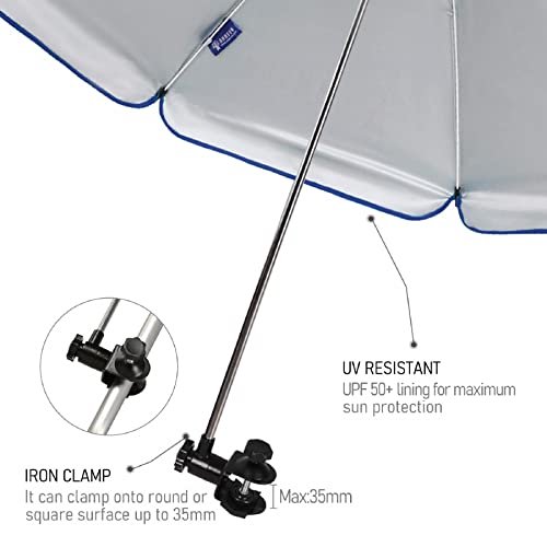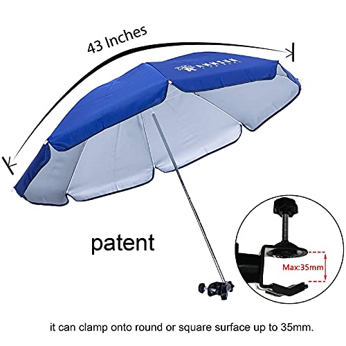 AMMSUN 110cm Clamp Sonnenschirm Ideal für Strandstühle, Tribünen, Kinderwagen, Wagen, Rollstühle oder Golfwagen Blau