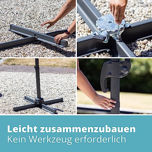 Der Sonnenschirm ist sämtliche robustem strapazierfähigem Leichtmetall gefertigt. Dessen ungeachtet ist der Ampelschirm vor Korrosion geschützt. Garantiert jahrelange Darbietung! In der Oberseite sind Stahlrippen sondern die Festigkeit befestigt.