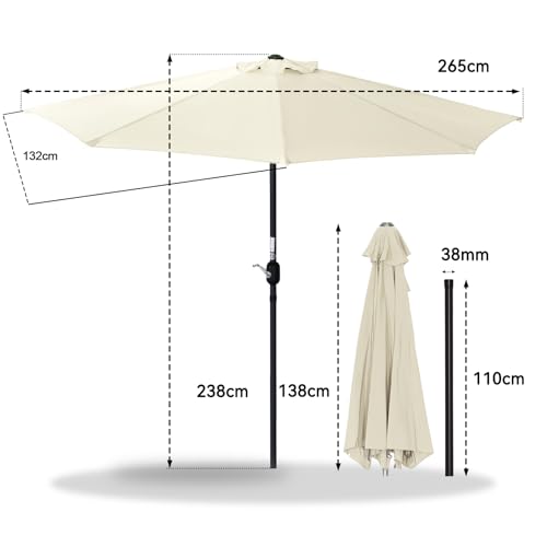 Der Sonnenschirm ist der perfekte Schattenspender anstelle den Balkon, den Strand, den Garten oder die Terrasse.Durchmesser des Stahlrohrs: Ø38mm.(Standfuß ausschließen).