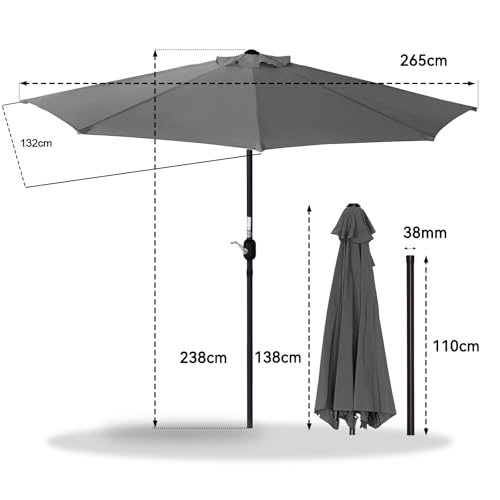 🌞Material: Aluminium und Polyester Gewicht: 4,6Kg Produktmaße: Dia.270 x H.238cm Wasserabweisend.Mastdurchmesser: 38mm