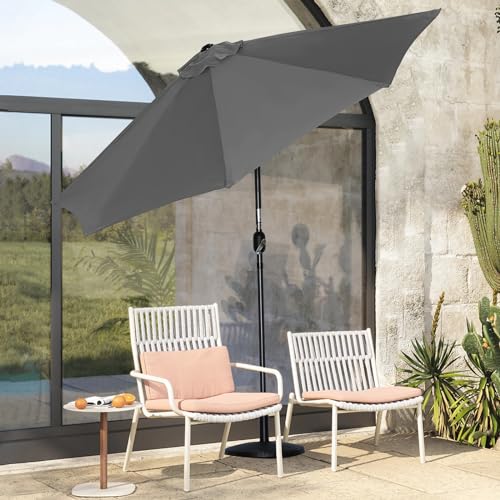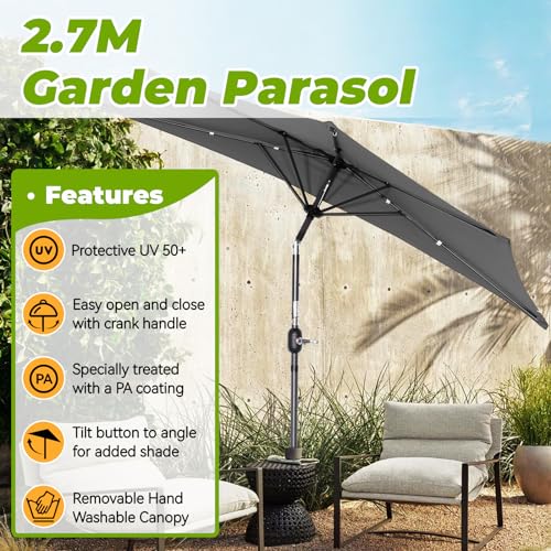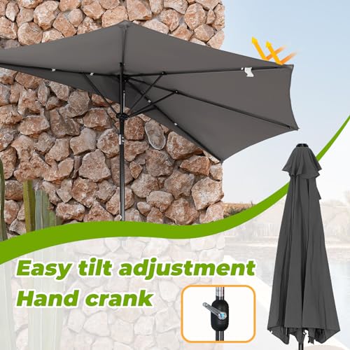 Angel Living 270cm Halbrund Sonnenschirm, Marktschirm,Terrassenschirm mit Kurbel für Garten,Terrassen, Höfe,Schwimmbäder,mit UV-Schutz 40+ Grau