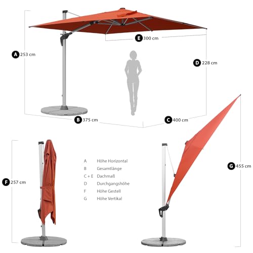 Leichtmetall Ampelschirm – Schirmfläche 3x4m – per Kurbel leicht zu anbrechen – bitte verbannen ! benötigte Aufstellfläche 375 x 400 cm