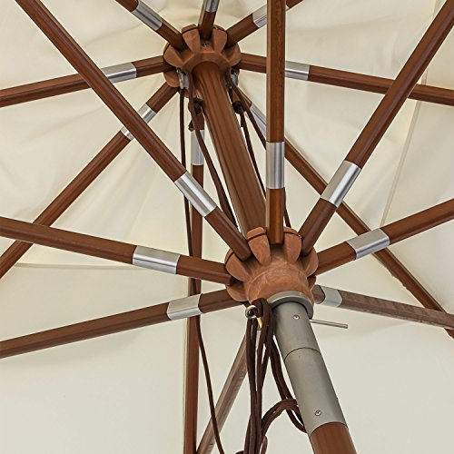 besonders leichtläufiges, doppeltes Seilzugsystem mit 4 Umkehrrollen zum Öffnen des Schirms