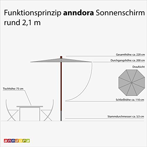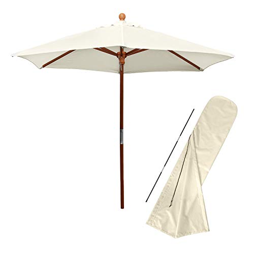 Sonnenschirm, Balkonschirm, Terassenschirm in ø 2,1 m rund, in der Farbe Natural plus passende Husse – Art. 21002_Bundle