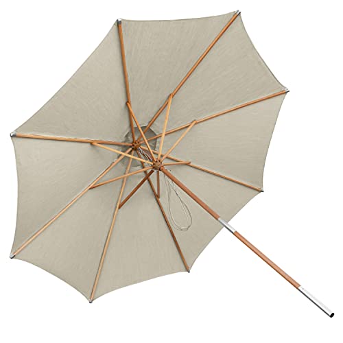 Sonnenschirm rund 300 cm Durchmesser – Stamm alle Buchenholz FSC zertifiziert) – Bespannung Leinen-Baumwoll-Mischgewebe – langlebig mit hohem UV Abschirmung