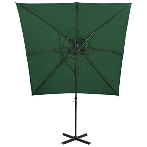 Home & Garden – Freischwinger-Regenschirm mit doppeltem Oberteil, 250 x 250 cm, Grün / Rasen & Garten – Dieser Freischwingerschirm ist perfekt, um Schatten zu bestellen und Sie vor den schädlichen UV-Strahlen der Sonne zu schützen. Sämtliche UV-Abschirmung- und lichtechtem Polyester gefertigt, bietet Ihnen die Sonnenschirmhülle optimalen Abschirmung vor der Sonne und ist leicht zu reinigen. Es verfügt über einen stabilen Kreuzsockel für mehr Stabilität. Das exklusive Design dieses Sonnenschirms ermöglicht es Ihnen, ihn um 360 Abstufung zu neigen und zu drehen, um die Sonne zu blockieren. Die starke Aluminiumstange und die 8 Rippen machen den Sonnenschirm sehr hart im Nehmen und langlebig. Dieser Gartenschirm lässt sich durch den Kurbelmechanismus einfach öffnen und verallgemeinern. Darüber hinaus hilft das Kopie-Top-Design Baldachin bei der Belüftung. Bitte verfemen Sie, dass wir empfehlen, den Schirmstoff mit einem Imprägnierspray zu protokollieren, wenn er starken Niederschlägen ausgesetzt ist.