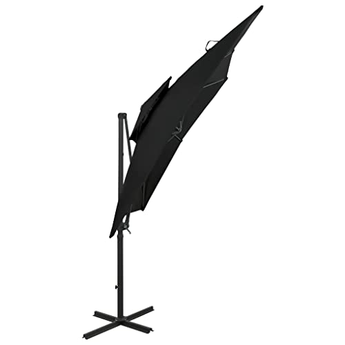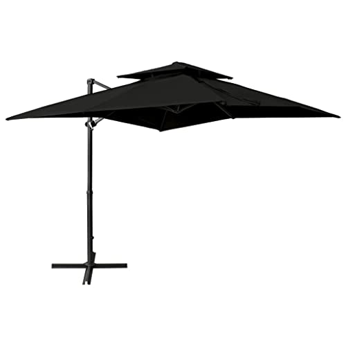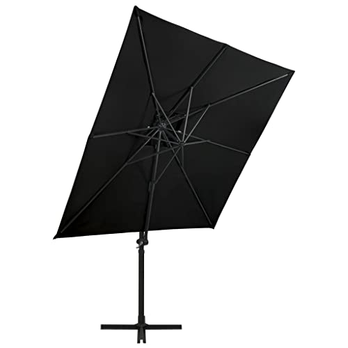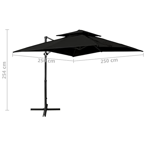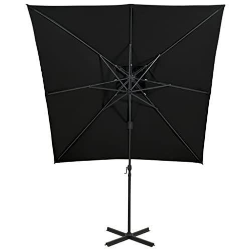 Home & Garden – Freischwinger-Regenschirm mit doppeltem Oberteil, 250 x 250 cm, Schwarz-Rasen & Garten – Dieser freischwingende Regenschirm ist perfekt, um Schatten zu sich abrackern und Sie vor den schädlichen UV-Strahlen der Sonne zu schützen. Leer UV-Abschirmung- und lichtechtem Polyester gefertigt, bietet Ihnen die Sonnenschirmhülle optimalen Abschirmung vor der Sonne und ist leicht zu reinigen. Es verfügt über einen stabilen Kreuzsockel für mehr Stabilität. Das exklusive Design dieses Sonnenschirms ermöglicht es Ihnen, ihn um 360 Tönung zu neigen und zu drehen, um die Sonne zu blockieren. Die starke Aluminiumstange und die 8 Rippen machen den Sonnenschirm besonders abgehärtet und langlebig. Dieser Gartenschirm lässt sich durch den Kurbelmechanismus einfach öffnen und kombinieren. Darüber hinaus hilft das Abschrift-Top-Design Baldachin bei der Belüftung. Bitte anerkennen Sie, dass wir empfehlen, den Schirmstoff mit einem Imprägnierspray zu skizzieren, wenn er starken Niederschlägen ausgesetzt ist.