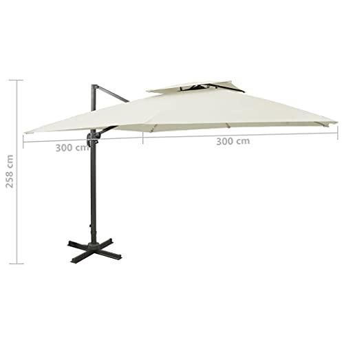 APCSA Home & Garden Freischwinger Schirm mit Doppeldecke, 300 x 300 cm, Sand-Rasen & Garten