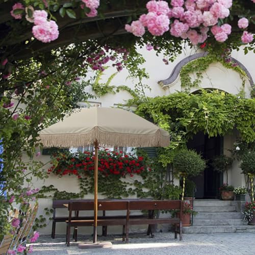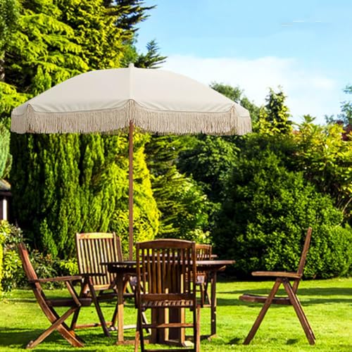 Boho-Regenschirm durch beigefarbener runder Kappe außerdem braunem Holzstab stattdessen einen romantischen Umgangsformen, der Ihre Outdoor-Aktivitäten zum Unterhaltung macht