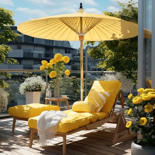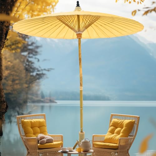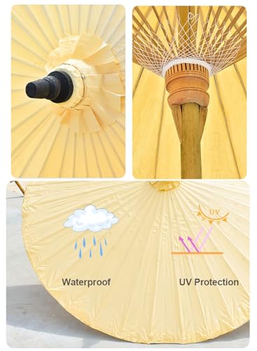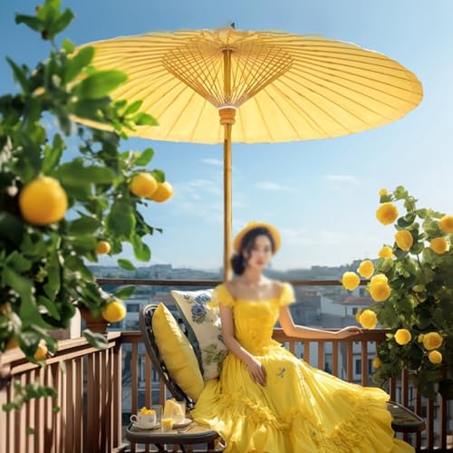 Aqkgtj Sonnenschirm Chinesischer Retro-Gartenschirm 200 cm, rund Shanghai-Terrassenschirm aus Bambus, wasserdichter und UV-geschützter Outdoor-Ölpapierschirm für Balkon, Hof, Gelb