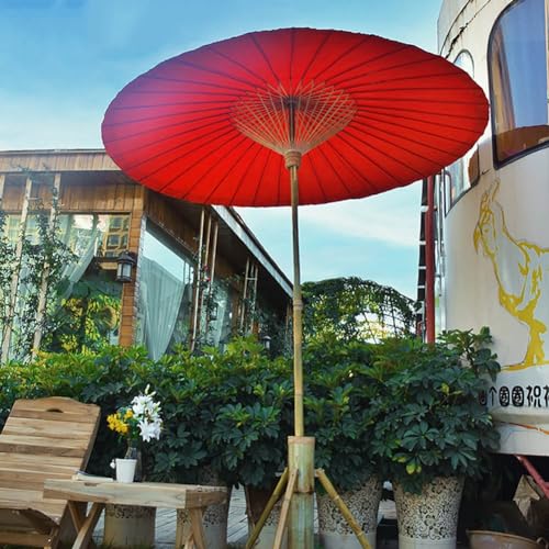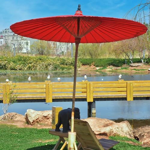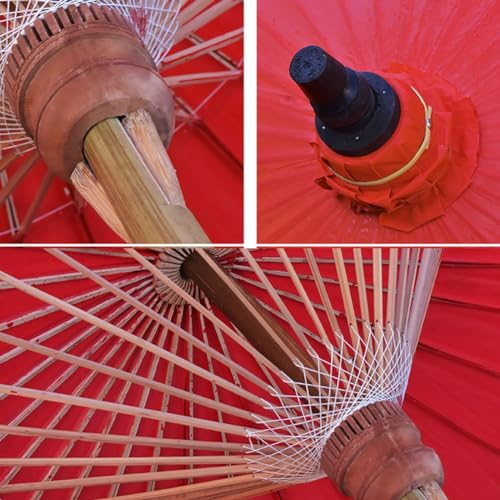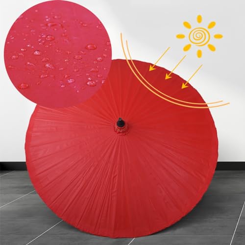 Aqkgtj Sonnenschirm Chinesischer Shanghai-Gartenschirm 200 cm, rund Retro-Terrassenschirm für den Außenbereich, wasserdicht, UV-Schutz, Bambus-Balkonschirm für Balkon, Deck, rot