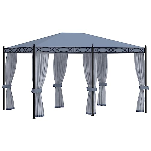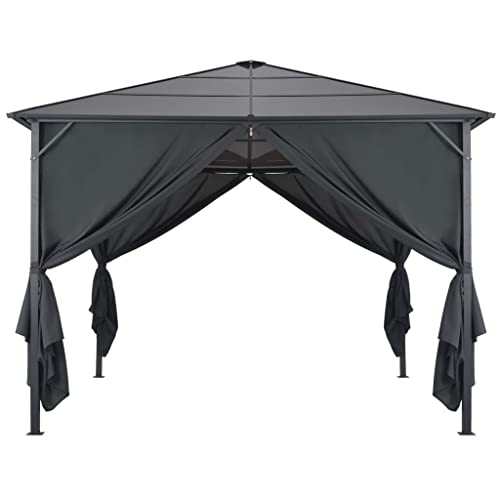 Aufsatz-Gazebo mit Vorhang, Aluminium, 3 x 3 m, Schwarz, Rasen & Garten, Outdoor-Wohnen, Outdoor-Strukturen, Vordächer & Pavillons