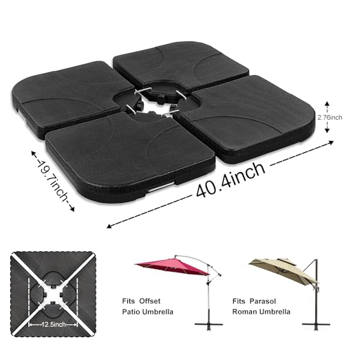 Artpuch 4-teiliger quadratischer Sonnenschirmständer Schirmhalter aus Kunststoff mit freitragender Terrassenschirm-Basis, mit Wasser und Sand gefüllt (79,8 kg)