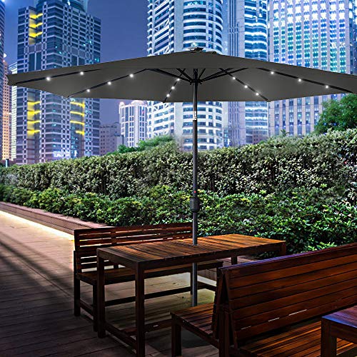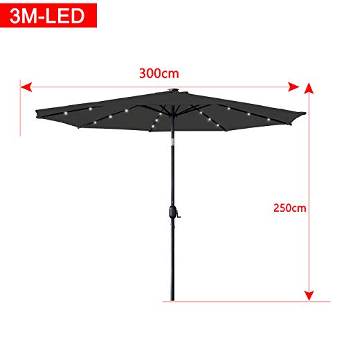 Leichtmetall-Sonnenschirm Mit LED Unterlagen – Farbe: Dunkelgrau,Durchmesser: 300cm,Schirmhöhe: 245cm,Material Mast: Leichtmetall,Material Bezugstoff: 100% Polyester (Wasserdicht)