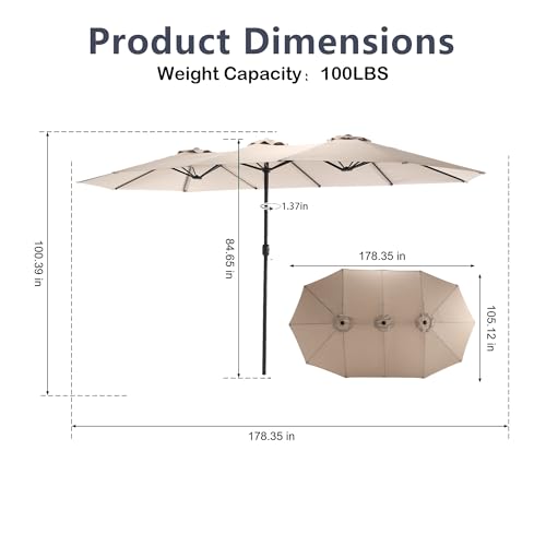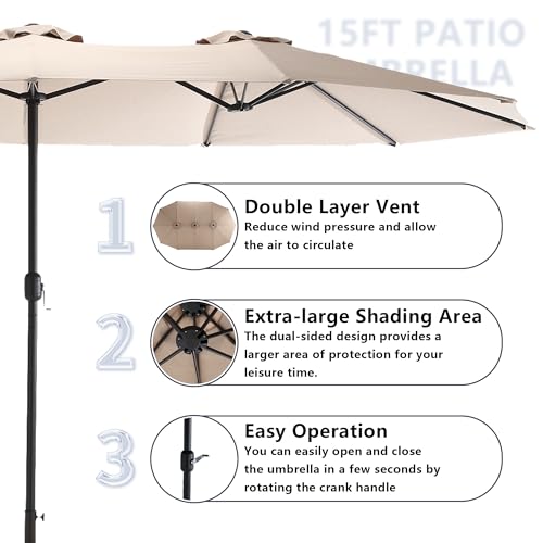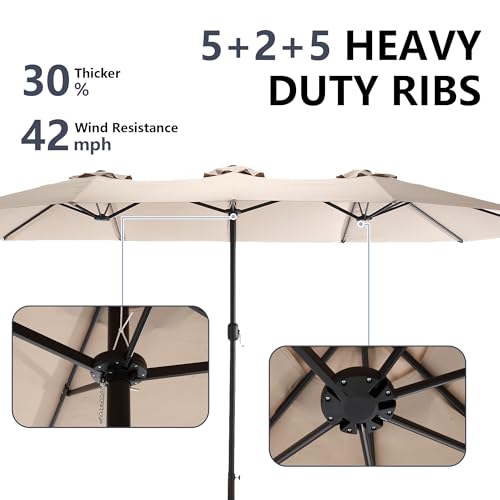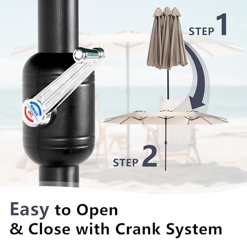 AUKWIK Sonnenschirm outdoor mit Ständer, Doppler Sonnenschirm rechteckig 450 x 266 cm, großer XXL Terrassenschirm Marktschirm wasserabweisend mit Kurbel für Garten, Balkon und Pool, Beige