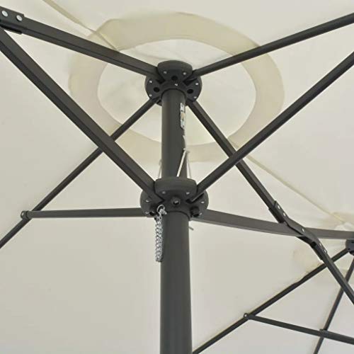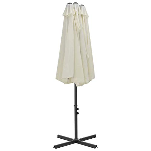 Das Produkt verfügt über eine stabile Kreuzkonstruktion für zusätzliche Stabilität. Das einzigartige Design dieses Sonnenschirms ermöglicht es Ihnen, den Sonnenschirm zu kippen, um die Sonnenstrahlen zu blockieren.