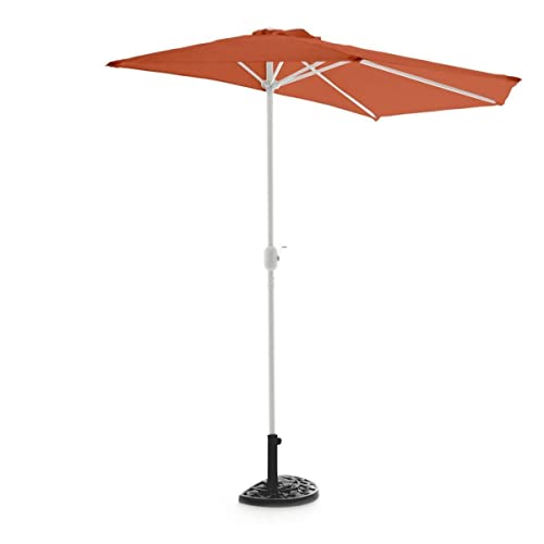 Dieses Komplettset ist die perfekte Auftrennung statt dessen kleine, schmale Balkone oder Terrassen. Ein halbrunder Balkon-Sonnenschirm mit passendem Ständer und wetterfester Schutzhülle.