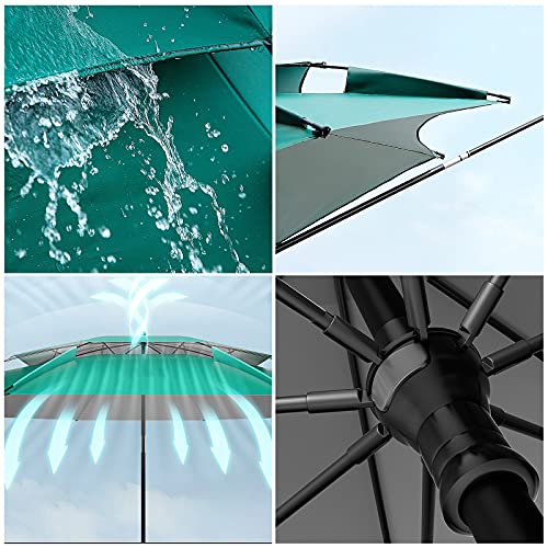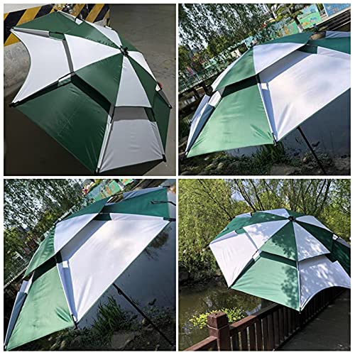 Regen- und sonnengeschützt, vergrößerte Regenschirmoberfläche, zweilagige Belüftung, universelle Beseitigung, um direktes Sonnenlicht alle allen Richtungen abzuhalten und Ihren Angelausflug kühler zu machen.