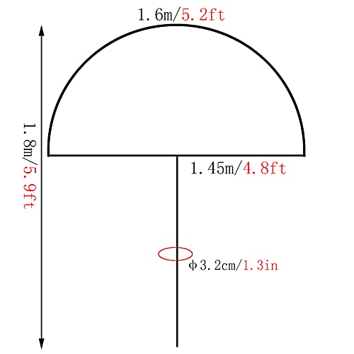 Abmessungen: Schirmfläche Einöde 1,6m, Öffnung φ1,45m, Schirmhöhe 1,8m, kann nach Belieben demontiert werden, das Öffnen und Folgern ist außergewöhnlich bequem.