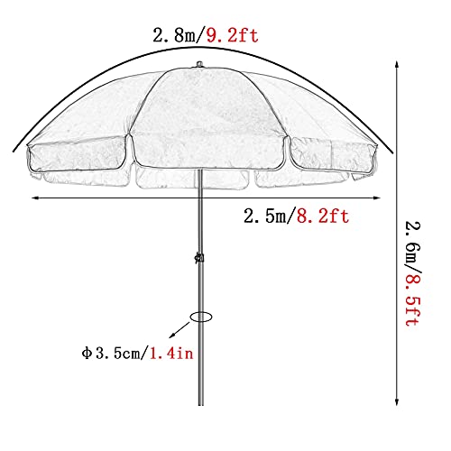 AYJS 2.6m Sonnenschirm,Terrassen Parasol,Sonnenschutz,für Strandgarten Balkon Pool,Blau,Weinrot,Grün,Mehrfarben,Blau Und Weiß