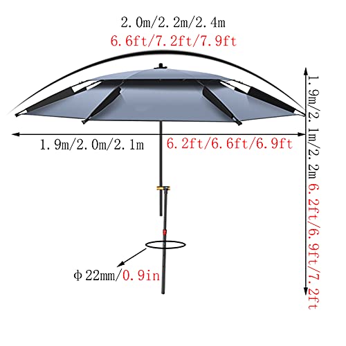 Die Höhe des gesamten Regenschirms: 1,9 m/2,1 m/2,2 m