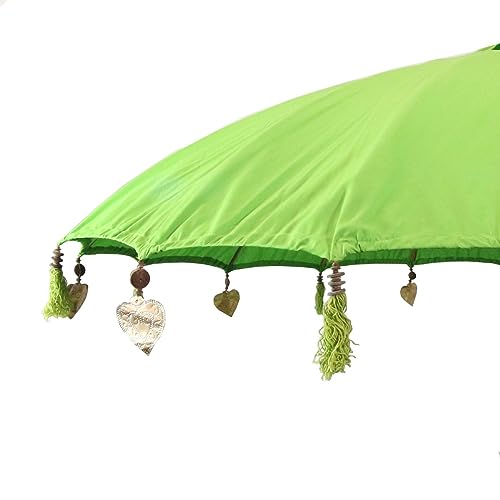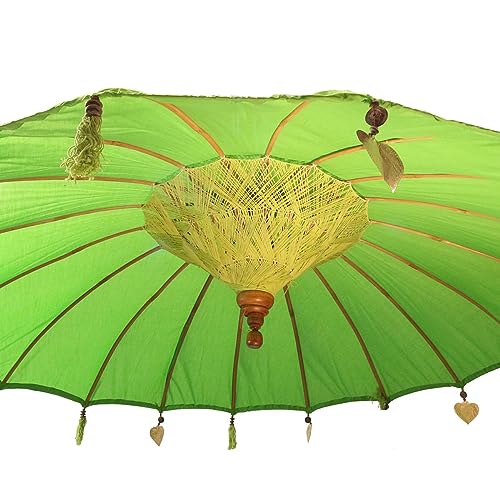 Ein eindrucksvoller Sonnenschirm alle Bali der indonesischen Sonneninsel. Der dekorative Schirm wurde in kleinen Handwerksbetrieben in Indonesien handegarbeitet Das Material des authentischen Schirmes ist alle Baumwolle und Bambusstäben, der untere Beendigung ist alle Holz.