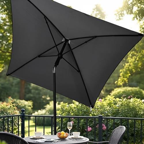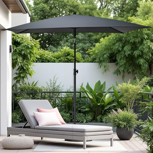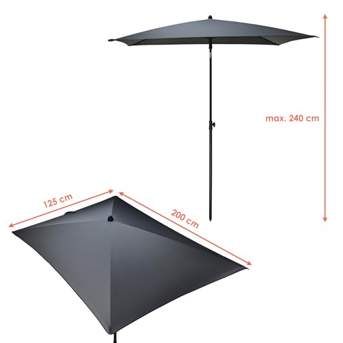 Balkon Sonnenschirm grau mit Knickgelenk – 125 x 200 cm – Gartenschirm rechteckig UV-beständig – Sonnen Schutz Schirm Garten Terrasse Marktschirm mit verstellbarem Neigungswinkel