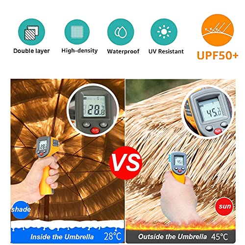 ☂【Überlegener Sonnenschutz】: Es gibt eine erste Stoffschicht, dann wird der Bast auf den Stoff genäht, um 2 Schichten Sonnenschutz und hervorragenden UV-Abschirmung zu erreichen. Wasserdichtes Polyestergewebe