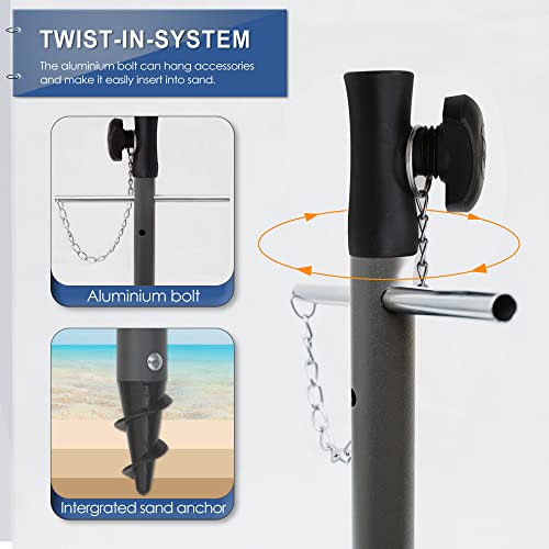 🔃【inkl. Bodenhülse & Eindrehstange】: Mit der Eindrehstange an der unteren Stange können Sie den Strand Sonnenschirm mit integriertem Bodenhülse einfacher und sicher in Sand oder Boden festschrauben. Sodass brauchen Sie keine zusätzlichen Kaufen aber erhalten Sie einen 2-in-1 Sonnenschirm.