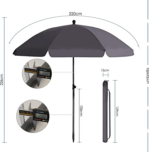 BelleMax Sonnenschirm Strand 200 cm Anthrazit Stabil Strandschirm mit Bodenhülse & Schutzhülle Neigungswinkel und Höhe verstellbar Rund Gartenschirm Marktschirm Sonnenschutz UV50+