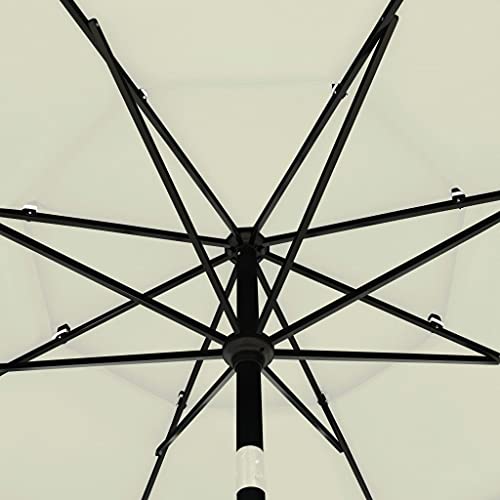 BIGTO 3-stöckige Gartenschirme Polyester & Aluminium Stange Terrassenschirm Freischwinger Schirm Sand 350 x 260 cm