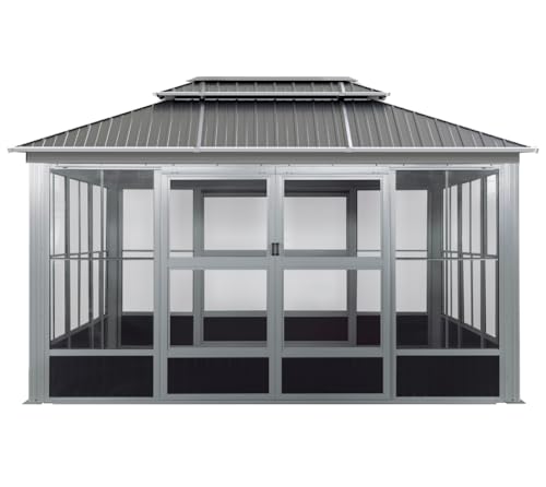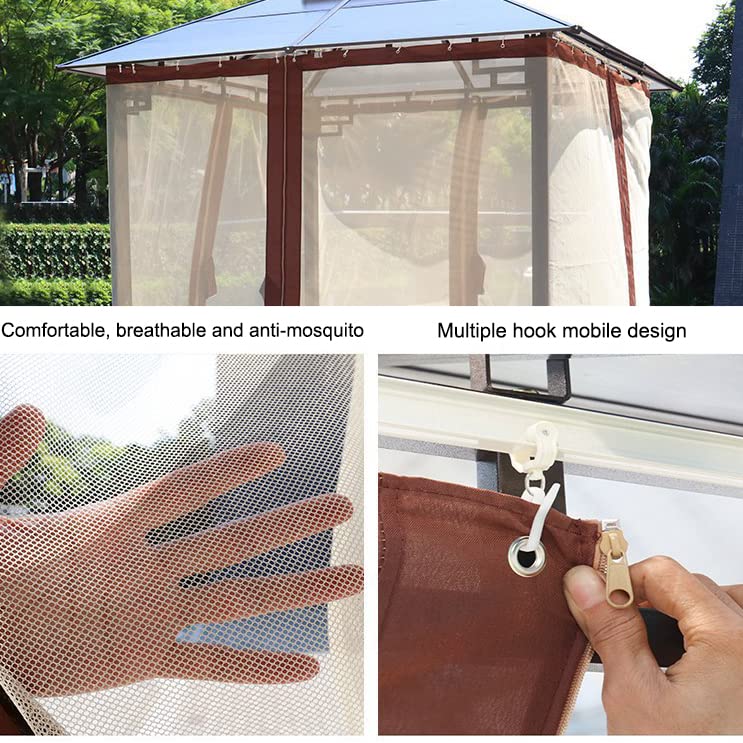 【Angemessenes Design】: Bieten Sie Sonnenschutz und schützen Sie Ihre Privatsphäre.Letzteres sorgt für eine gute Luftzirkulation und hält fliegende Insekten und Staub vom Pavillon fern.Die am oberen Rahmen angebrachten Haken eignen sich perfekt zum Aufhängen von Lichtern, Pflanzen und mehr. 【Robuste Konstruktion】: Der Rahmen besteht aus rostfreiem Aluminium, das Absplittern, Abblättern, Rost und Korrosion widersteht, allen Witterungseinflüssen standhält und für zusätzliche Haltbarkeit sorgt. und