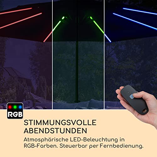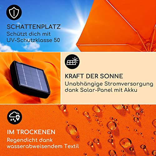 blumfeldt Calais Sonnenschirm, 300 cm x 265 cm höhenverstellbarer und faltbarer Gartenschirm mit Solar-LED-Beleuchtung und UV-Schutz Wasserdichter Sonnenschutz für Balkon, Terrasse und Gartenschirm