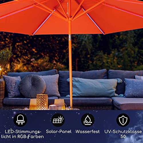 SCHIRM BEI TAG, STIMMUNGSLICHT BEI NACHT: Dieser Sonnenschirm schützt dich tagsüber mit seinem breiten Sonnenschutz. In der Nacht leuchtet der Sonnenschirm mit wechselnder LED-Beleuchtung, die eine gemütliche und stimmungsvolle Atmosphäre schafft
