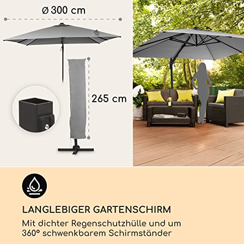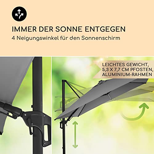STABILE KONSTRUKTION: Der Aluminium-/Stahlrahmen sorgt für unglaubliche Stabilität, vulgo wenn das Wetter umschlägt. Die Bespannung besteht alle wasserabweisendem Polyester, sodass dieser Sonnenschirm Sturm und Regen problemlos übersteht.