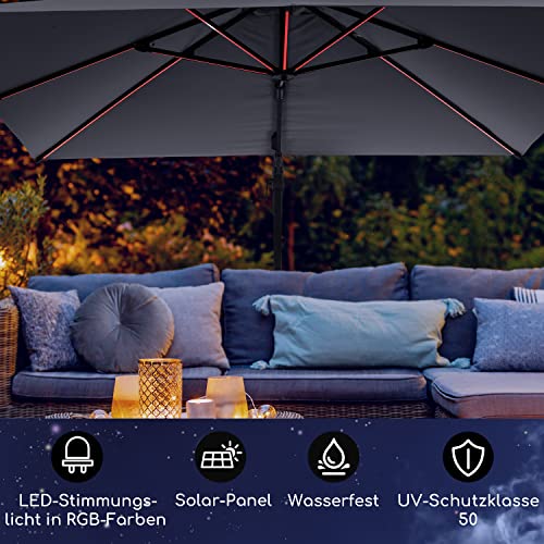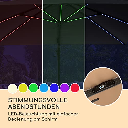 SCHIRM BEI TAG, LICHT BEI NACHT: Unser Balkon Sonnenschirm schützt dich tagsüber und bietet Sonnenschutz. In der Nacht leuchtet der Sonnenschirm für Balkon und Garten mit einer wechselnden LED-Beleuchtung, die für eine gemütliche Stimmung sorgen.