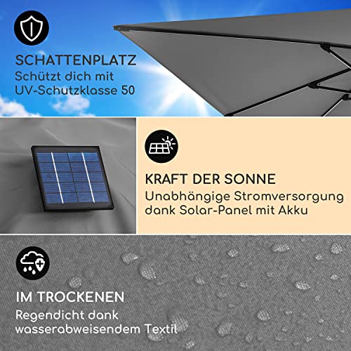 Blumfeldt Sonnenschirm für Balkon, Sonnenschirm mit Solarpanel & LED Beleuchtung, Wasserdicht & UV-Abschirmung, Sonnenschirm für Terrasse & Garten, Verstellbarer Balkon Schirm, Sonnenschutz