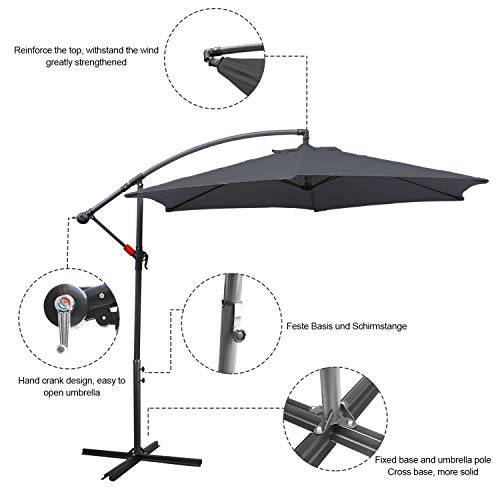 ⛱【 Robust und einfach zu bedienen 】Freischwebender Schirm mit 8 Streben inkl. Handkurbel für leichtes Aufspannen. Der Ampelschirm steht hart im Nehmen auf einem Fußkreuz und kann flächendeckend platzsparend positioniert werden. Kann zum platzsparenden Transport praktisch zerlegt werden.