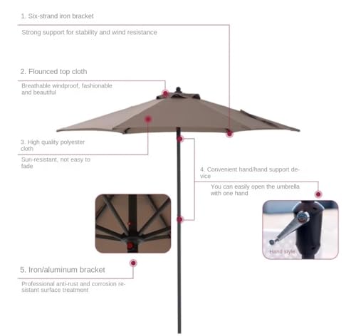Six-strand iron bracket/aluminum bracket, stable, wind-resistant and providing strong support. Push-button tilt design let your patio umbrella be adjustable to keep the sun at your back all the time. Postadresse:The base is not included.