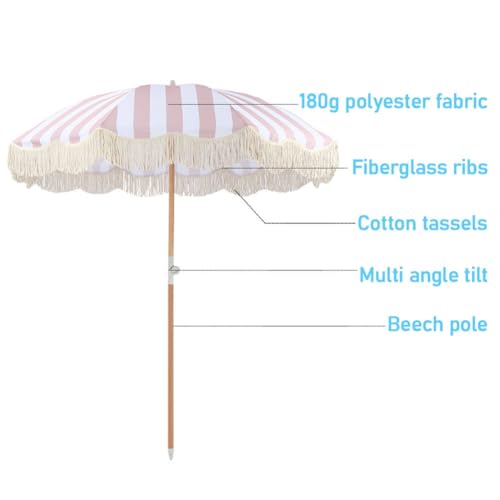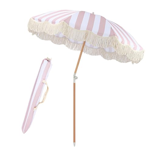 Outdoor-Strandschirm im böhmischen Sittlichkeit, tragbarer Gartensonnenschirm, faltbarer Holzmast, leicht zu verstauen des Weiteren im Freien zu befördern, tropischer Urlaubsschirm