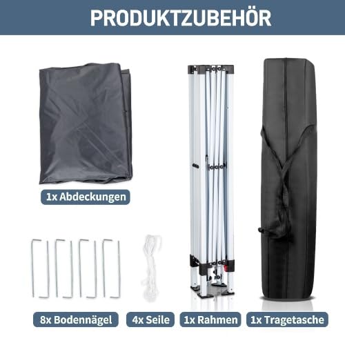 Inklusive Komplettpaket: Allesamt Übernahme beinhaltet 1x Pavillon, 2x Seitenwände mit Reißverschluss, 2x Seitenwände mit Fenstern, 4x Sandsäcke, 1x 600D Oxford-Tasche, 8x Erdnägel und 4x Seile, sowie eine detaillierte Bedienungsanleitung – alles, was Sie benötigen, um Ihren faltbaren Pavillon hart im Nehmen und abgehärtet aufzubauen.