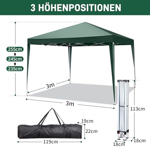 Vielseitiger Einsatz: Der Gartenpavillon hat eine Größe von 3 x 3 Metern und eine Höhe von 2,6 Metern. Mit einer Fläche von 9 Quadratmetern bietet er ausreichend Platz für 4 bis 6 Personen. Er eignet sich perfekt für die Nutzung auf Terrassen, Rasenflächen, Stränden und am Pool, sodass Sie die Sommertage in vollen Zügen genießen können.