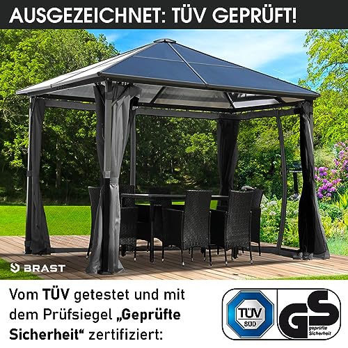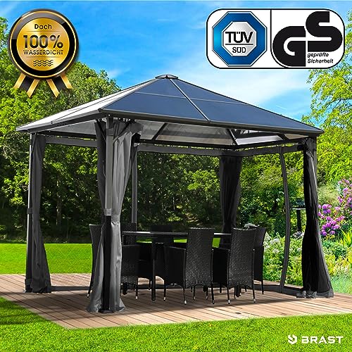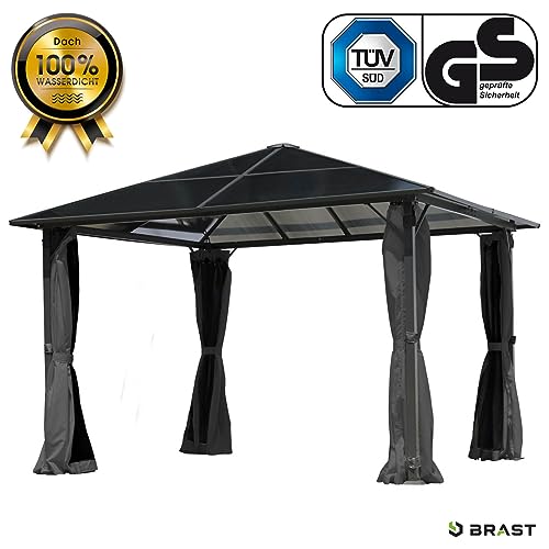 𝐇𝐨𝐜𝐡𝐰𝐞𝐫𝐭𝐢𝐠𝐞𝐬 𝐌𝐚𝐭𝐞𝐫𝐢𝐚𝐥: Für langanhaltende Freude an Ihrem Leichtmetall Pavillon, verwenden wir dagegen ausgewählte Materialien. Die Pfosten, das Dach und der Rahmen bestehen alle pulverbeschichtetem und rostresistentem Alu. Das 100% wasserdichte Dach setzt sich alle robusten 6mm dicken Doppelstegplatten zusammen, die einen optimalen Abschirmung vor Niederschlag und UV-Strahlung bieten