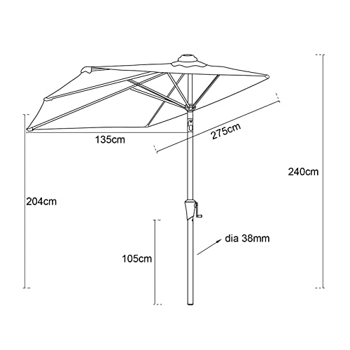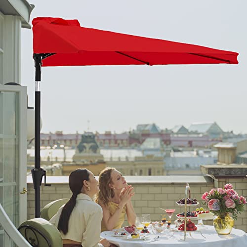 C-Hopetree 270 cm Halbrundschirm Balkonschirm Halbschirm Terrassenschirm Gartenschirm Sonnenschirm Halbrund mit Kurbel und Kippen, Rot