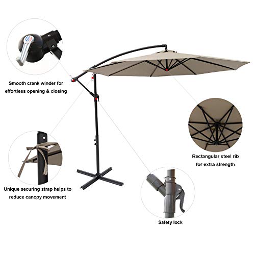C-Hopetree 300 cm Ampelschirm Bananenschirm Freitragender Sonnenschirm Gartenschirm Terrassenschirm für Garten Terrasse, Sonnenschutz UV 50+, Taupe