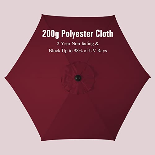 CAMORSA Sonnenschirm Ø 270 cm Gartenschirm Marktschirm Terrassenschirm 8-Rippen Sonneschirm Sonnenschutz aus Eisen und Polyester UV-Schutz 50+ Grau (Ohne Ständer), Weinrot